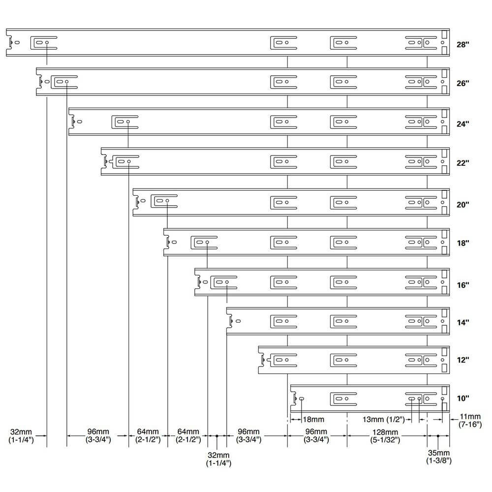 8″ to 28″ Full Extension Precision Drawer Slide